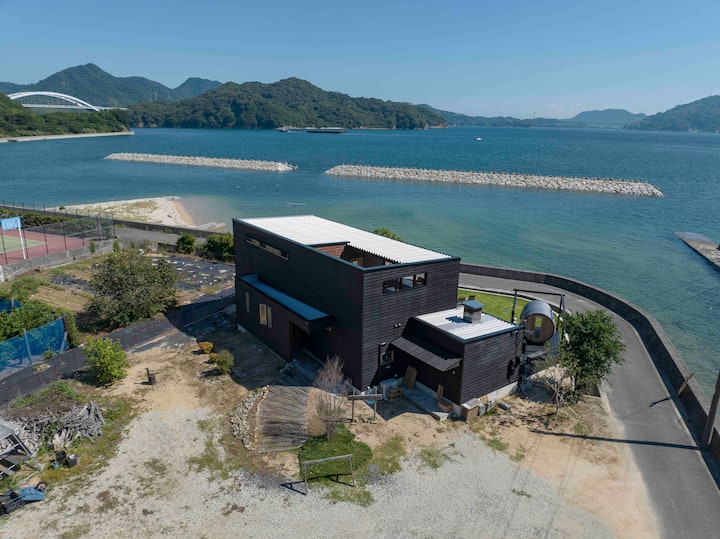 しまなみ海道・大三島、ビーチ目の前の一棟貸別荘 – 有料プライベートサウナ利用可
