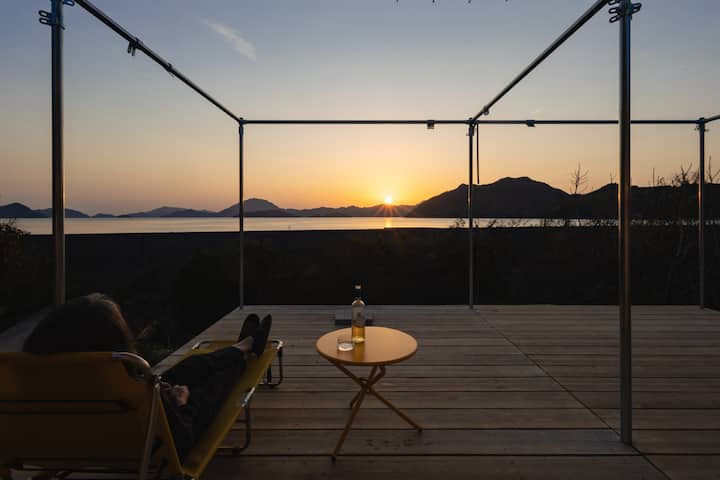 瀬戸内の多島美と美しい夕日を楽しめる、1日1組限定の宿泊施設です。この宿は、海外で数々の賞を受賞した建築家であるホスト自身が設計しました。テーマは「非日常ではなく、日常をより豊かに」。ここで、そんな丁寧な暮らしを体験していただけます。