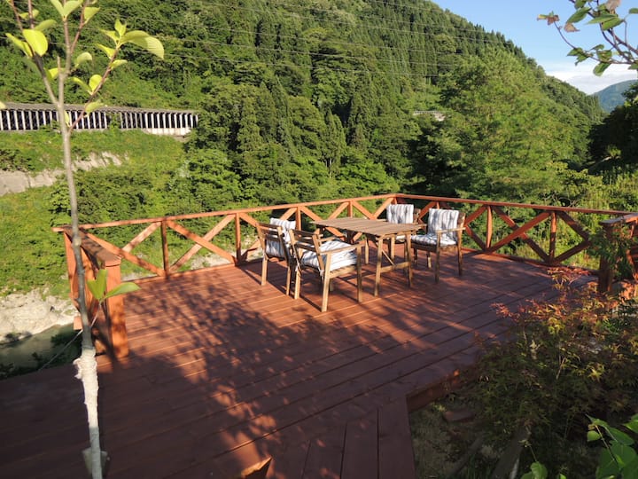手取川の渓流を望むログハウス