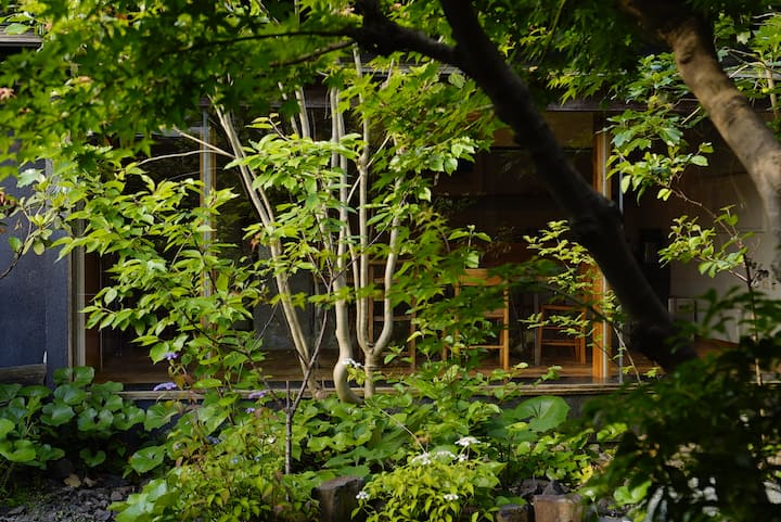 江戸時代の街並みとJR関駅の間に位置する閑静な広邸宅 – 藍染めリネン、広いキッチン、お茶室完備