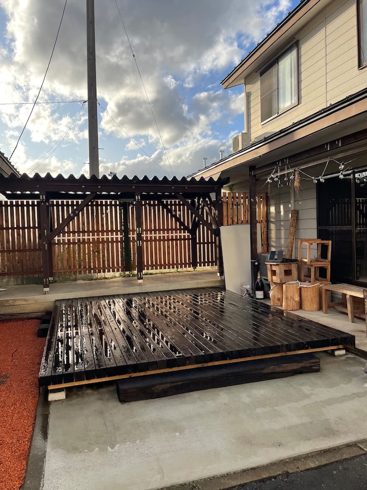こちらの宿泊先は、オーナーが古民家をDIYでフルリノベーションした古民家です。広いリビングにはプロジェクターや掘り炬燵、ハンモックなどが設置されており、映画を見たり、Switchで遊んだりしてリラックスした時間を過ごすことができます。